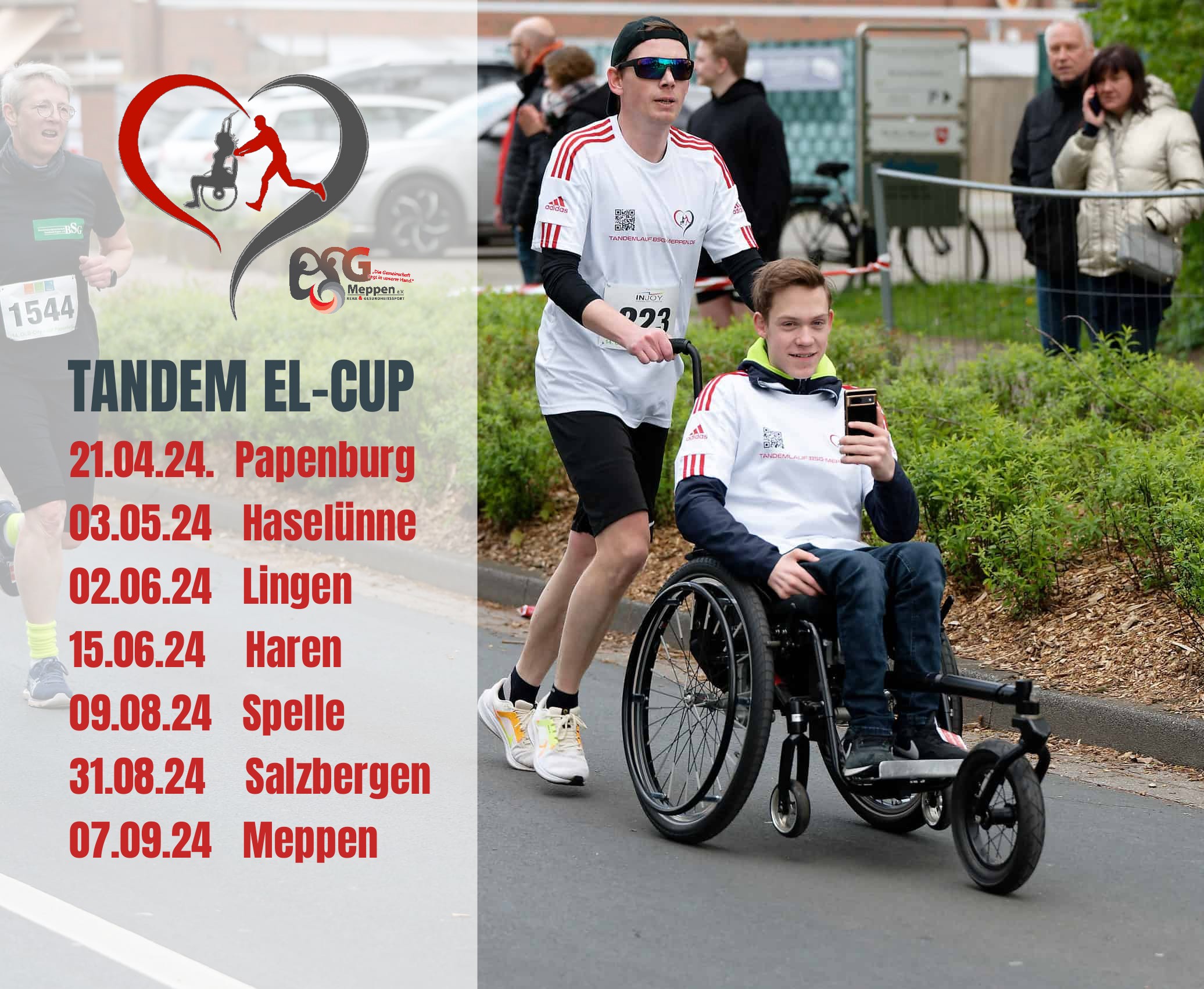 einen Marathon bewältigt haben, wollen sie nun den EL-Cup 2024 absolvieren. Hierfür werden die beiden als Tandem an den 7 Cityläufen mit jeweils 10 KM teilnehmen. Während der kompletten Aktion habt Ihr die Möglichkeit, in Form einer kleinen Spende, die beiden bei Ihrer Reise quer durch das Emsland zu unterstützen. Jeder € hilft!